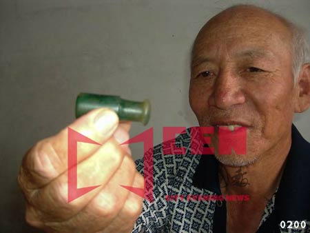 王英民告诉记者,母亲生前总和儿女们讲烟袋嘴的故事。据他所知,他母亲和父亲结合后,常和赵四小姐在一起。那一年,17岁的赵四小姐想要母亲烟袋杆上的烟袋嘴玩,可母亲没给,两人为此还干了一仗。自从知道这件事后,母亲去世后他们就把这个绿色的烟袋嘴保存了起来。说着,王英民从一个小红布袋里把烟袋嘴拿出来给记者看。
