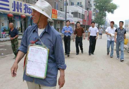 老大爷挂着征婚启事从容地行走在街头