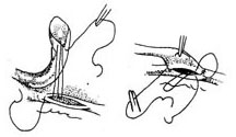 胸廓内动脉-冠状动脉端侧吻合术:胸廓内动脉口径与冠状动脉相似,应用胸廓内动脉施行分流术后血管通畅率较大隐静脉为高,且无需作近端主动脉吻合术。但由于长度有限和解剖位置,一般仅适于用左侧胸廓内动脉与左冠前降支或对角支施行吻合术。右侧胸廓内动脉口径比右冠状动脉小,长度又不足,因此极少应用右侧胸廓内动脉与右冠状动脉分支施行吻合术。