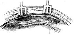 图1 用大隐静脉作主动脉-冠状动脉旁路移植术