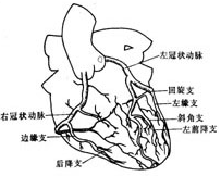 1)右冠状动脉优势型 此型最多见,约占80%。右冠状动脉粗而长,供应血液到右心室后壁并越过心脏十字区由后降支供血到部分左心室后壁和心室间隔后部。