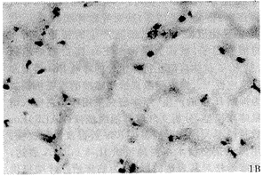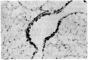 参照文献[7]进行,略有改进。阴性对照:肺组织切片预先经RNA酶处理后再行原位杂交。图像分析:每一玻片任选5个视野,自动检测阳性细胞面密度,取其平均值,进行统计分析。