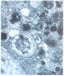 2.电镜观察(表4):哮喘组8例,除2例长期服用皮质激素外,其余6例均可见到肥大细胞存在且正在脱颗粒(图3)。慢支组8例中,均未见到肥大细胞及脱颗粒现象。慢喘支组1例患者(1/5)可见到嗜碱性粒细胞脱颗粒现象。