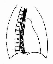 (3)髓质型:癌肿侵及食管壁全层,并向腔内外扩展,致使管壁增厚、管腔狭窄以及不规则的充盈缺损。