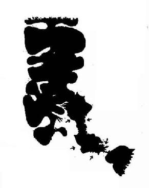 | 球部山字变形,内有小圆形龛影,周围伴月晕征 |