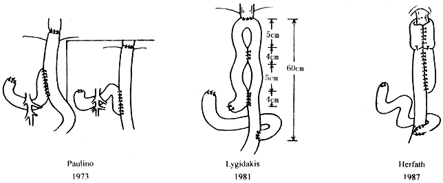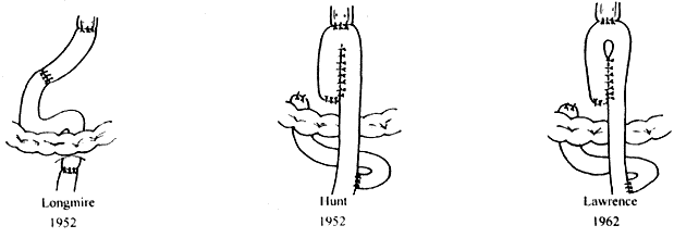 1952年Longmire和Beal提出用一段空肠插在食管和十二指肠之间,并且以这种形式重建消化道取得了比其它术式更好的效果。同时他们指出该方法将摄取的食物直接送入十二指肠似乎对食物的消化和吸收更合乎生理。