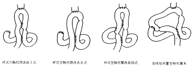 2.5 袢式空肠代胃改良术[4] I式 用7号线结扎阻断原袢式空肠代胃的升支。此法对防止反流性食管炎效果良好,但食糜容量相应减少。