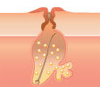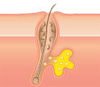 | 成人痤疮的一种重要类型,导因于皮脂与角质代谢失去平衡有关,与荷尔蒙分泌、化妆保养、空调的环境、睡眠周期都有关系。皮脂分泌不顺畅,加上毛囊壁的角质增厚,会形成显微粉刺(microcomedo)阻塞毛孔。许多女性在额头与两颊会有一些暗藏的粉刺面疱,脸颊会觉得粗燥有颗粒感,想挤也挤不出来,平常发炎情况不严重,闷热日晒后会整片跑出来。一旦发炎后就会形成深部发炎的大型囊肿,通常需要3-4周才会消退,很容易留下痘疤痕迹。 |