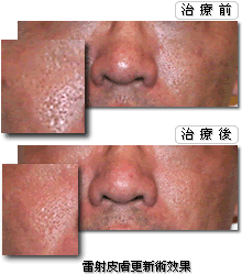 最近研发出的一种新型雷射应用手术即可以较为简易的方式以改善皮肤的问题-雷射皮肤更新术。其乃利用对雷射更精准且细致的控制,以改善毛孔粗大、浅凹洞及浅斑等。其主要作用于表皮层,将雷射光束照入皮肤表层,产生高能量并使其水分汽化,而达到去除皮肤表层及产生新的胶原蛋白,使胶原蛋白的结构得以重组,产生除皱磨皮效果。