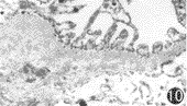 图9 对照组RBM负电荷位点分布情况 ×25000图10 对照组GBM负电荷位点分布情况 ×20000
