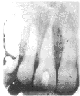 Radiograph showing an ill-defined radiolucency associated with a vital right upper central incisor.