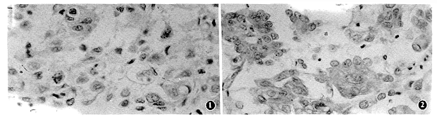 1.材料来源:我院1989~1992年间经病理确诊的60例乳腺癌标本,以及15例正常乳腺组织、16例乳腺增生病和15例乳腺纤维腺瘤标本;1996年1月~1997年2月间收治的19例术后发生远处转移的乳腺癌癌组织。