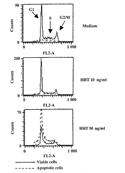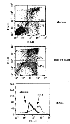 细胞凋亡,又称程序性死亡,是细胞的一种生理性死亡过程。近年来研究表明它 在机体的许多生理病理过程中都起重要作用,多种抗癌药能诱导细胞凋亡。高三尖杉 酯碱( Homoharringtonine, HHT )是目前广泛用于临床治疗急性、慢性髓性白血病和骨髓 异常增生综合征 (MDS) 等的一线抗肿瘤药,而其对急性淋巴细胞白血病的治疗少见报 道。我们在体外实验发现HHT对T-淋巴细胞白血病细胞株有明显促凋亡作用 ,本文对其促凋亡机制作一探讨。