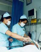 山东省潍坊市益都中心医院坚持实行医患双向承诺制度,构建新型的护患关系,通过开展以贴近患者、方便患者为主要内容的亲情服务拉近了护患间的距离。图为该院的白衣天使们正在精心护理一位重症患者。