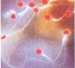 在透射电子显微镜下可见整个精子由细胞膜包裹着,头部有一个顶体和结构致密的细胞核。核中主要成分为脱氧核糖核蛋白(DNP),许多不育病人精子中DNP量虽正常,但是其化学组成异常。核内常有大小不等、形状不规则的核泡,可能是染色质浓聚的缺陷所致, 对受精并无影响。