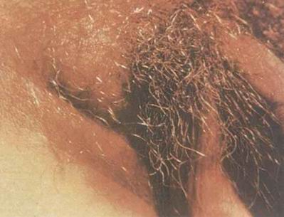 图 注:龟头部有粟粒大红褐色的丘疱疹,无自觉症状,为典型的性病性淋巴肉芽肿初疮。