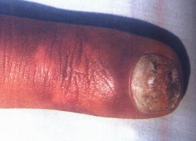 甲癣是皮肤癣菌侵犯指(趾)甲所引起的浅部真菌感染性疾病,俗称“灰指甲”。因真菌侵入的部位不同,临床上可分甲下型甲癣和浅表性白色甲癣两种。后者真菌从甲面侵入,形成不整形的白色混浊区,日后范围扩大,甲面变软,久者亦常致甲板变形,增厚,变脆。