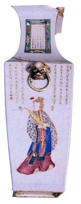 瓷花瓶:汉哀帝的男宠董贤的画像。“断袖之癖”的典故即出于此(清代)