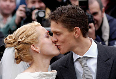比利时网坛公主贾斯泰·海宁(Justine Henin)于2002年11月16日与恋爱四年的网球教练Pierre-Yves Hardenne 喜结良缘。 这位20岁的比利时新娘四年前在出席一个网球俱乐部颁奖活动中与Pierre擦出爱火花,两人于2001年3月订婚,时隔一年多,感情依然稳定决定完婚,有情人终于在16号成眷属了!