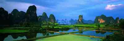 从桂林象鼻山码头,下行至阳朔古城,长达83公里。沿江风光旖旎,碧水萦回,奇峰倒影,飞瀑参差,构成一幅绚丽多彩 的画卷,人称“百里漓江、百里画廊”。唐代大诗人 韩愈曾留下“江作青罗带,山如碧玉簪”的诗 句来赞美这条如诗似画的彩色画廊。