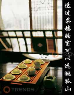 虽说在自助式茶馆里,茶艺已不再是主角,但这些茶馆往往都还是很注意茶具的选择。绿茶用透明玻璃盖碗,乌龙茶是紫砂壶或潮汕瓷,盛器和茶具大多定做。第一泡,茶艺小姐也必仔细将每个茶礼动作都婉转做了,然后让你慢用。