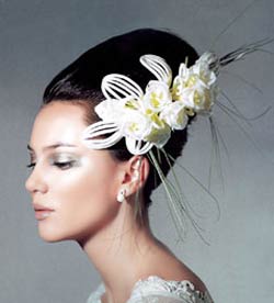 通常新娘的发型多为往上梳,露出整个清爽的脸庞,显现新娘的端庄大方;但通常也使一些脸形上的缺点暴露无疑,所以新娘应针对自己的缺点与造型师好好沟通,以盘出最适合的发型,利用发髻的位置,造成视觉上的修整。