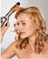 step4 step5 step6 第一步:把稍微有点潮湿的头发分成8股。然后用一只中号的烫发器卷住一股头发的发梢,手拿烫发器向内卷至发根。按此方法将其余头发做完。