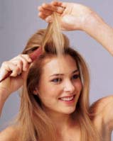 第一步:在湿头发上通体抹上定型发胶(如果头发是自然直发或者稍有波浪形最好),然后弯腰让头发垂下,用吹风机把头发彻底吹干。将头发均匀划分为四区(即纵横平分),用夹子分别夹好。