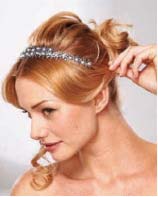 第五步:找一根发带,把发带系好(系发带的位置就是在第二步用梳子划分出两缕头发处。)将剩在前边的两缕头发轻轻卷起并拉到发带后用卡子别好。