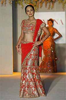 印度模特在新德里举行的2004年新娘礼服时装展上展示婚礼装
