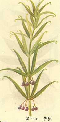 2、大风癞疮(风邪入血,日久成癞,鼻坏色败)。用黄精去皮,洗净,取二斤晒干,放在米饭上蒸到饭熟时,把药保存好,经常服食。