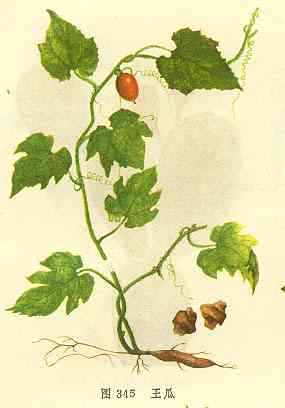 6、月经不利(小腹胀痛、带下或一月两次月经)。用王瓜根、芍药、桂枝虫各三两,共研为末,每服一匙酒送。一天服三次。此方名“土瓜根散”。