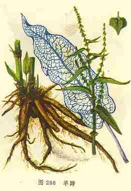 3、喉痹。用羊蹄根,在陈醋中研成泥。先以布把喉外擦红,再把药涂上。