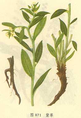 3、小便淋。用紫草一两,用成散剂,每服二钱,饭前服。井华水送下。