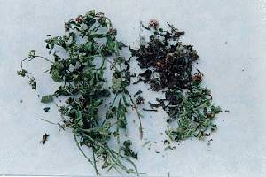 药材 干燥全草,茎方柱形,长15-35厘米,直径2-4毫米,黄褐色带紫,或绿色,有节,节间长3-7厘米,上部有对生分枝,表面被白色绒毛,角棱处较密,质脆,易折断,断面类白色,中空。叶对生,叶片卷曲而皱缩,多破碎,上面深绿色,下面浅绿色,具有白色绒毛;质脆。枝顶常有轮伞花序,黄棕色,花冠多数存在。气香,味辛凉。以身干、无根、叶多、色绿、气味浓者为佳。