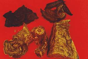 药材 为掌叶大黄、唐古特大黄和药用大黄的干燥根茎。以外表黄棕色、锦纹及星点明显、体重、质坚实、有油性、气清香、味苦而不涩、嚼之发粘者为佳。