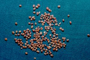 药材 干燥种子呈椭圆形或近卵圆形而稍扁。表面红棕色,一侧有数条纵沟,一端有种脐,呈褐色圆点状突起。质硬,破开后可见黄白色或黄色的种仁,有油性。无臭,味甘,微辛。以粒大、饱满、油性大者为佳。