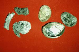 其它名称 真珠母,鳆鱼甲,九孔螺,千里光,鲍鱼皮,金蛤蜊皮