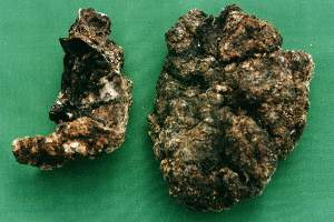 药材 干燥的胎盘为不规则的类圆形或椭圆形碟状。紫红色或棕红色,有的为黄色,一面凹凸不平,有多数沟纹,为绒毛叶;一面为羊膜包被,较光滑,在中央或一侧附有脐带的残余,四周散布细血管。质硬脆,有腥气,以整齐、黄色或紫红色、洁净者为佳。