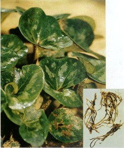 植物形态 多年生草本。茛茎下部生有多数黄白色须根,有香气。叶宽心形至肾状心形,长、宽约3~8cm,两面略被毛,边缘及脉上密被子细柔毛;叶柄长7~15cm。花单生于叶腋;花被筒钟状,顶端 3裂,外面淡棕紫色,有淡黄色显著陷入的网纹,内面紫色,网状隆起;雄蕊12;子房下位,花柱6。蒴果肉质。花期3~4月,果期5~6月。