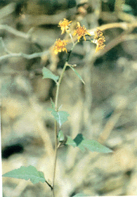 | | 中文名: | 千里光 | | 类 别: | 全草类 | | 英文名: | Climbing Groundsel Herb | | 别 名: | 九里明、黄花母、九龙光、九岭光。 | | 来 源: | 为菊科植物千里光Senecio scandens Buch, -Ham.的地上部分。 | | 采 制: | 夏、秋季枝叶茂盛、花将开放时采割,晒干。 | | 性 味: | 性寒,味苦。 | | | 植物形态: | 多年生草本,有攀援状木质茎,高1~5m,有微毛,后脱落。叶互生,卵状三角形或椭圆状披针形,长4~12cm,宽2~6cm,先端渐尖,基部楔形至截形,边缘有不规则缺刻状齿裂或微波状或近全缘,两面疏被细毛。状状花序顶生,排成伞房状;总苞筒形,总苞片1层;花黄色,舌状花雌性,管状花两性。瘦果圆柱形,有纵沟,被短毛,冠毛白色。花果期秋冬季至次年春。 | | 生长地: | 生于山坡、疏林下、林边、路旁、沟边草丛中。产于江苏、浙江、广西、四川。 | | 化学成份: | 毛莨黄素(flavoxanthin)、菊黄素(chrysanthema xanthin)、黄酮、鞣质、生物碱等。 | | 功能主治: | 清热解毒,明目,止痒。用于风热感冒、目赤肿痛、泄泻痢疾、皮肤湿疹疮疖。 | | 附注: | | | |