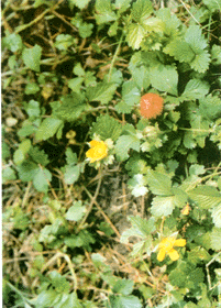 | | 中文名: | 蛇莓 | | 类 别: | 全草类 | | 英文名: | Indian Mockstrawberry Herb | | 别 名: | 蛇泡草、三匹风、龙吐珠、三爪龙。 | | 来 源: | 为蔷薇科植物蛇莓Duchesnea indica (Andr.)Focke的全草。 | | 采 制: | 春、秋季采收,洗净,晒干或鲜用。 | | 性 味: | 性微寒,味甘、酸;有小毒。 | | | 植物形态: | 多年生草本,全株有白色柔毛。茎细长,匍状,节节生根。三出复叶互生,小叶菱状卵形,长1.5~4cm,宽1~3cm,边缘具钝齿,两面均被疏矛橇 ,具托叶;叶柄与地片等长或长数倍,有向上伏生的白柔毛。花单生于叶腋,具长柄;副萼片5,有缺刻,萼片5,较副萼片小;花瓣5,黄色,倒卵形;雄蕊多数,着生于扁平花托上。聚合果成熟时花托膨大,海绵质,红色。瘦果小,多数,红色。花期4~5月,果期5~6月。 | | 生长地: | 生于山坡、路旁、草丛、阴湿处。分布于华东、中南、西南。 | | 化学成份: | 种子含亚油酸、β-谷甾醇。 | | 功能主治: | 清热解毒,散结。用于痢疾、肠炎、白喉、颈淋巴结核、水火烫伤、蛇咬伤、疔疮肿毒。 | | 附注: | | | |