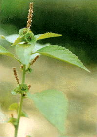 | 植物形态: | 一年生草本,高30~60cm,被柔毛。茎直立,多分枝。叶互生,椭圆状披针形,长2.5~8cm,宽1.5~3.5cm,顶端渐尖,基部楔形,两面有疏毛或无毛,叶脉基部3出;叶柄长,花序腋生,有叶状肾形苞片1~3,不分裂,合对如蚌;通常雄花序极短,着生在雌花序上部,雄花萼4裂,雄蕊8;雌花序生于苞片内。蒴果钝三棱形,淡褐色,有毛。种子黑色。花期5~7月,果期7~11月。 | | 生长地: | 生于山坡、沟边、路旁、田野。分布几乎遍于全国,长江流露尤多。 | | 化学成份: | 含生物碱、黄酮甙、酚类。 | | 功能主治: | 清热解毒,利湿,收敛止血。用于肠炎、痢疾、吐血、衄血、便血、尿血、崩漏、痈疖疮疡、皮肤湿疹。 | | 附注: | | |