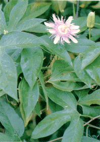 | | 中文名: | 西番莲 | | 类 别: | 全草类 | | 英文名: | Passionfiowe Herb | | 别 名: | 转枝莲、转心莲。 | | 来 源: | 为西番莲科植物西番莲Passiflora coerulea L.的全草。 | | 采 制: | 夏、秋季采收。 | | 性 味: | 性温,味苦。 | | | 植物形态: | 多年生缠绕草本。茎细,长达4m左右,有细毛,具单条卷须,着生于叶腋处。叶互生,掌状3或5深裂,长6~10cm,宽9~15cm,裂片披针形,先端尖,边缘有锯齿,基部心形;叶柄长2~5cm,先端近叶基处有2蜜腺。花单生叶腋,花梗长5~7cm;萼片5,矩形,先端圆,背有一突起;花瓣5,淡红色,内部有细须,呈浓紫色或淡紫色;雄蕊5,药能转动,状如时钟;子房上位。浆果椭圆形,成熟后黄色。花期秋季。 | | 生长地: | 多栽培于庭园。 | | 化学成份: | 花和果穗中含焦性儿茶酚、没食子酸、软脂酸、油酸、亚油酸、亚麻酸、肉豆蔻酸、谷甾醇等。 | | 功能主治: | 除风清热,止咳化痰。用于风热头昏、鼻塞流涕。 | | 附注: | | | |