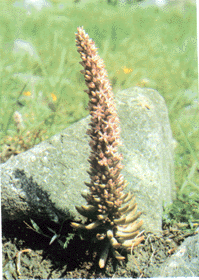 | | 中文名: | 瓦松 | | 类 别: | 全草类 | | 英文名: | Fimbriate Orostachys Herb | | 别 名: | 瓦花、向天草、酸塔。 | | 来 源: | 为景天科植物瓦松Orostachys fimbriatus (Turcz.) Berger的全草。 | | 采 制: | 夏、秋季采收全草,反复晒几次至干,或鲜用。 | | 性 味: | 性平,味酸;有毒。 | | | 植物形态: | 多年生肉质草本,高15~35cm,全株粉白色,密生紫红色斑点。不结实茎矮小,倾斜。基生叶莲座状。阔线形至倒披针形,先端具1半圆形软骨质的附属物,其边缘流苏状,中央有1长刺;茎生叶互生,线形至倒卵形,长2~3cm,宽4~5mm,先端长尖。开花时基生叶枯落,自茎顶抽出的尖塔形的圆锥花序,花梗长达1cm;萼片5;花瓣5,淡红色;雄蕊10, 花药紫色;心皮5。骨朵果矩圆形。花期10~11月。 | | 生长地: | 生于屋顶瓦缝中或岩石上。分布于长江中下游及北方。 | | 化学成份: | 含大量草酸。 | | 功能主治: | 清热解毒,止血,敛疮。用于泻痢、便血、月经不调、疮不收口。 | | 附注: | | | |