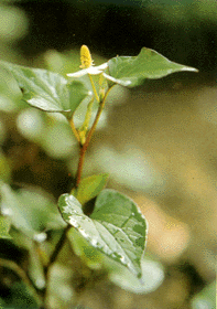 | 植物形态: | 多年生草本,高15~50cm,有腥臭气。茎下部伏地,生根,上部直立。叶互生,心形或阔卵形,长3~8cm,宽4~6cm,先端渐尖,全缘,有细腺点,脉上稍被柔毛,下面紫红色;叶柄长3~5cm;托叶条形,下半部与叶柄合生成鞘状。穗状花序生于茎顶,与叶对生,基部有白色花瓣状苞片4枚;花小,无花被,有1线状小苞;雄蕊3,花丝下部与子房合生;心皮3,下部合生。蒴果卵圆形,顶端开裂。花期5~8月,果期7~10月。 |