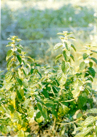 | 植物形态: | 多年生草本,高10~80cm,全株有香气。根茎匍匐。茎直立,方形,有分枝,具倒生柔毛。叶对生,披针形、卵形或长圆形,先端锐尖或渐尖,基部楔形,边缘有细锯齿,两面疏生短柔毛及腺鳞。轮伞花序腋生;苞片披针形或线状披针形,有缘毛;花萼钟形,外被柔毛和腺鳞,具10脉,5齿裂;花冠青紫色、淡红色或白色,冠檐4裂,上裂片顶端2裂,较大,雄蕊4。小坚果卵形。花期8~10月,果期9~11月。 | | 生长地: | 江苏、河南、安徽、江西有大面积栽培。 | | 化学成份: | 含挥发油,油中主要为I-薄荷醇(I-menthol)、1-薄荷酮(I-menthol)及薄荷 酯类等。 | | 功能主治: | 宣散风热,清头目,透疹。用于风热感冒、风温初起、头痛、目赤、喉痹、口疮、风疹、麻疹、胸胁胀闷。 | | 附注: | | |
