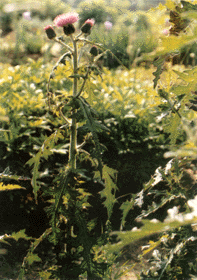 | 植物形态: | 多年生草本,高0.5~1m。根簇生,圆锥形,肉质,表面棕褐色。茎直立,有细纵纹,基部有白色丝状毛。基生叶丛生,有柄,倒披针形或倒卵状披针形,长15~30cm,羽状深裂,边缘齿状,齿端具针刺,上面疏生白我丝状毛,下面脉上有长毛;茎生叶互生,基部心形抱茎。头状花序顶生;总苞钟状,外被蛛丝状毛;总苞片4~6层,披针形,外层较短;花两性,管状,紫色;花药顶端有附片,基部有尾。瘦果长椭圆形,冠毛多层,羽状,暗灰色。花期5~8月,果期6~8月。 | | 生长地: | 生于山野、路旁、荒地。产于全国大部分地区。 | | 化学成份: | 含挥发油、物生碱;鲜叶含柳穿鱼甙(pectolinarin)。 | | 功能主治: | 凉血止血,祛瘀消肿。用于衄血、吐血、尿血、便血、崩漏下血、外伤出血、痈肿疮毒。 | | 附注: | 根亦入药,功效同地上部分。 | |