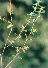 | 植物形态: | 一年生葡萄草本,有白色乳汁。茎纤细,近基部分枝,带紫红色,无毛。叶对生,长圆形,长4~10mm,宽4~6mm,先端钝圆,基部偏斜,边缘有细齿,绿色或带红色,两面无毛或疏生柔毛。杯状聚伞花序单生于叶腋;总苞倒圆锥形,淡红色,先端4裂,裂片长三角形;腺体4,横长圆形,有白色花瓣状附属物;子房3室,花柱3,顶端2裂。蒴果三棱状球形,无毛。种子卵形,黑褐色,外被白色蜡粉。花期7~10月,果实7月后渐次成熟。 |