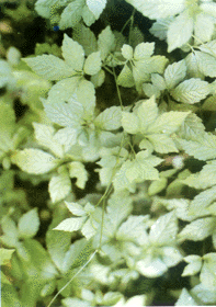 | 植物形态: | 多年生攀援草本。茎细长,节上有毛或无毛,卷须常2裂或不分裂。叶鸟足状,常有5~7小叶组成,小叶片长椭圆状披针形至卵形,有小叶柄,中间小叶片长3~9cm,宽1.5~3cm,边缘有锯齿,背面或沿两面叶脉有短刚毛或近无毛。圆锥花序;花小,直径约3mm;花萼裂片三角形,长约0.5mm;花冠裂片披针形,长约2mm。果球形,成熟时黑色。花期7~8月,果期9~10月。 | | 生长地: | 生于山间阴湿处。产于安徽、浙江、江西、福建、广东、贵州。现各地多有栽培。 | | 化学成份: | 含绞股蓝皂甙(aypenoside)1~52,其中3、4、8、12分别与人参皂甙(Rb1、Rb3、Rb、Rf2结构相同,另含有黄酮、糖类。 | | 功能主治: | 消炎解毒,止咳祛痰。现多用作滋补强壮药。 | | 附注: | | |